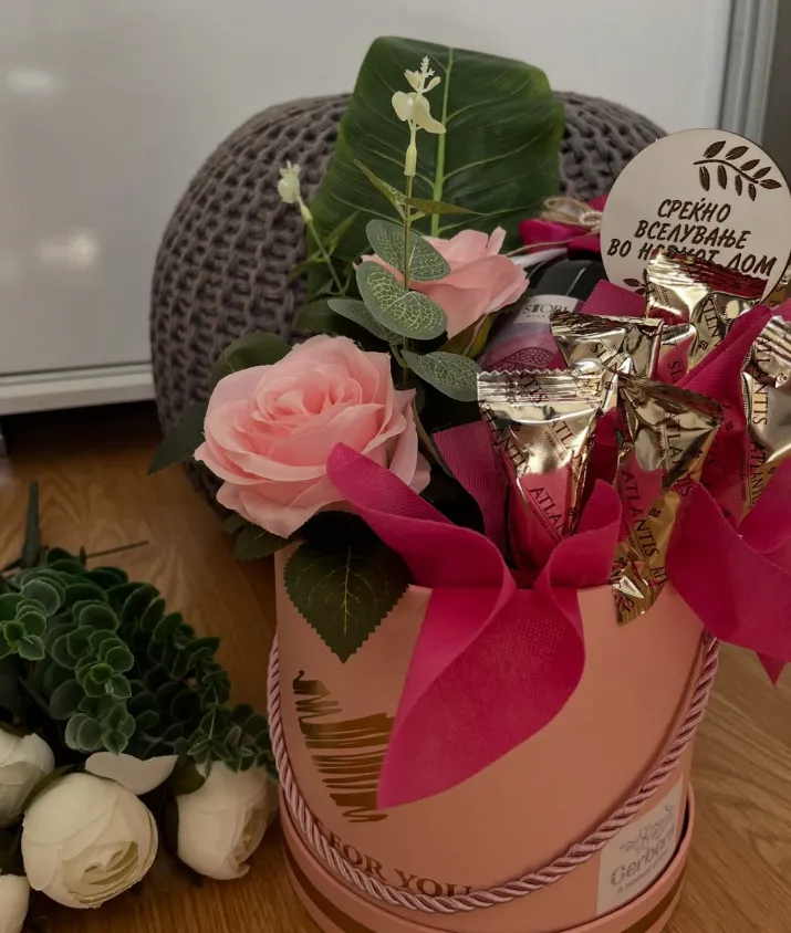 СОВРШЕН ПОДАРОК ЗА НОВ ДОМ ✨ Нежни рози, внимателно одбрани чоколади и порака од срце – комбинација што остава впечаток засекогаш 💖 Овој елегантен аранжман е идеален за вселување, роденден или како изненадување за некој што започнува ново поглавје во животот 🏡 🌸 Рачно изработен 🍫 Премиум чоколади 🎀 Луксузна кутија 💌 Можност за персонализирана порака Направи моментот незаборавен ✨